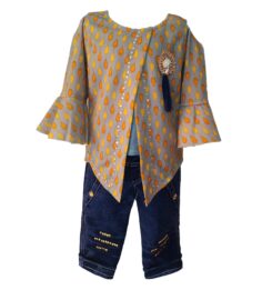 Baby Girl Boy Embellished Printed Top With Denim Trousers
